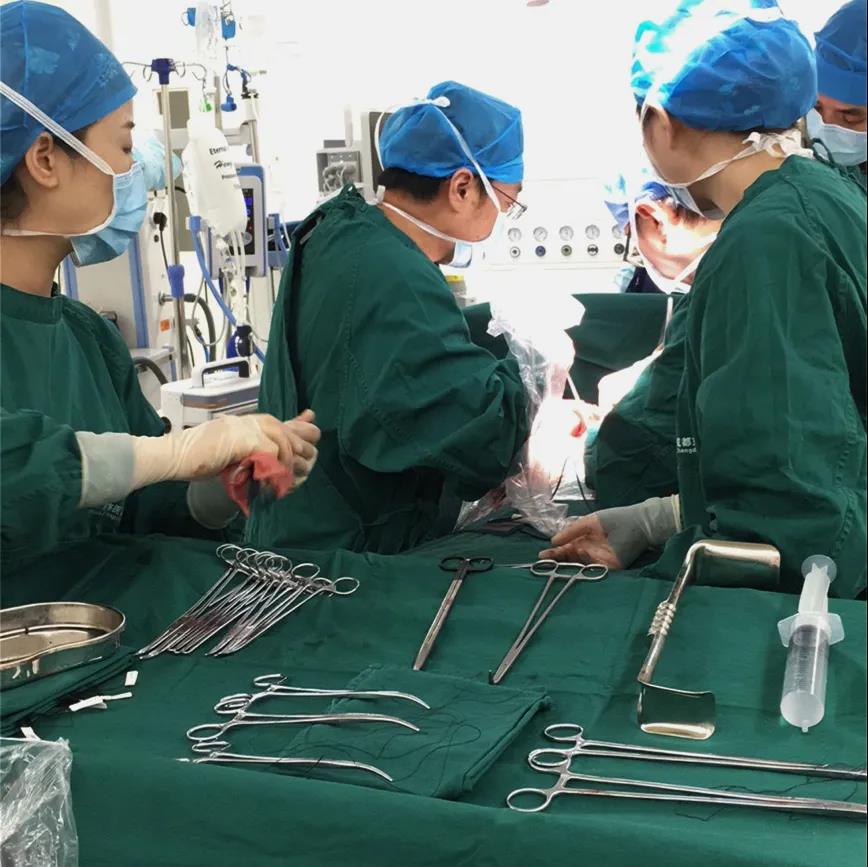 术前,普外科、麻醉科、手术室、输血科、ICU等多学科专家联合制定了周密的手术预案。在相关科室的大力协作下,石力主任医师主刀,采用难度高的前入路方法,克服了肿瘤体积巨大,血供丰富、周围粘连明显、肝脏各个血管受压移位变形等困难,经过9个小时的手术,精确地将肝脏的重要结构清晰地分离出来,完整地保留了剩余肝脏的全部体积和功能,成功切除该例巨型肝脏肿瘤。