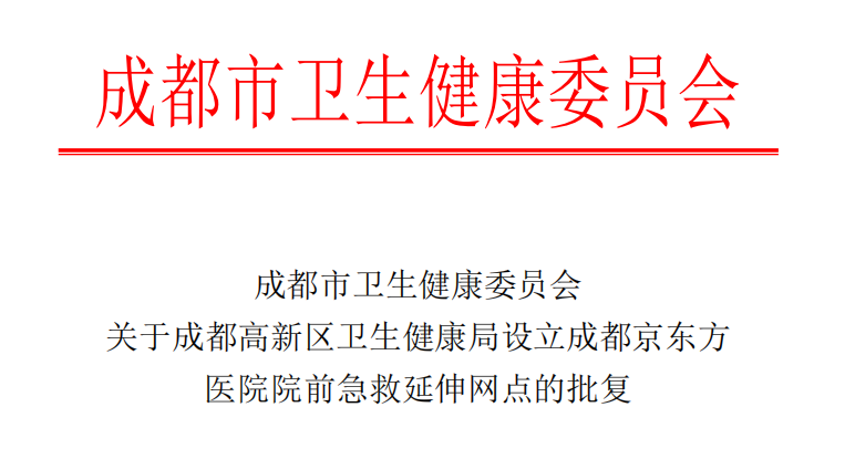 9月11日,成都京东方医院高新区荣华南路急救站顺利通过了成都市卫健委和成都市急救指挥中心的验收,并获得了正式授权,目前已接受成都市急救指挥中心(120)的调度,正式开展院前急救工作。