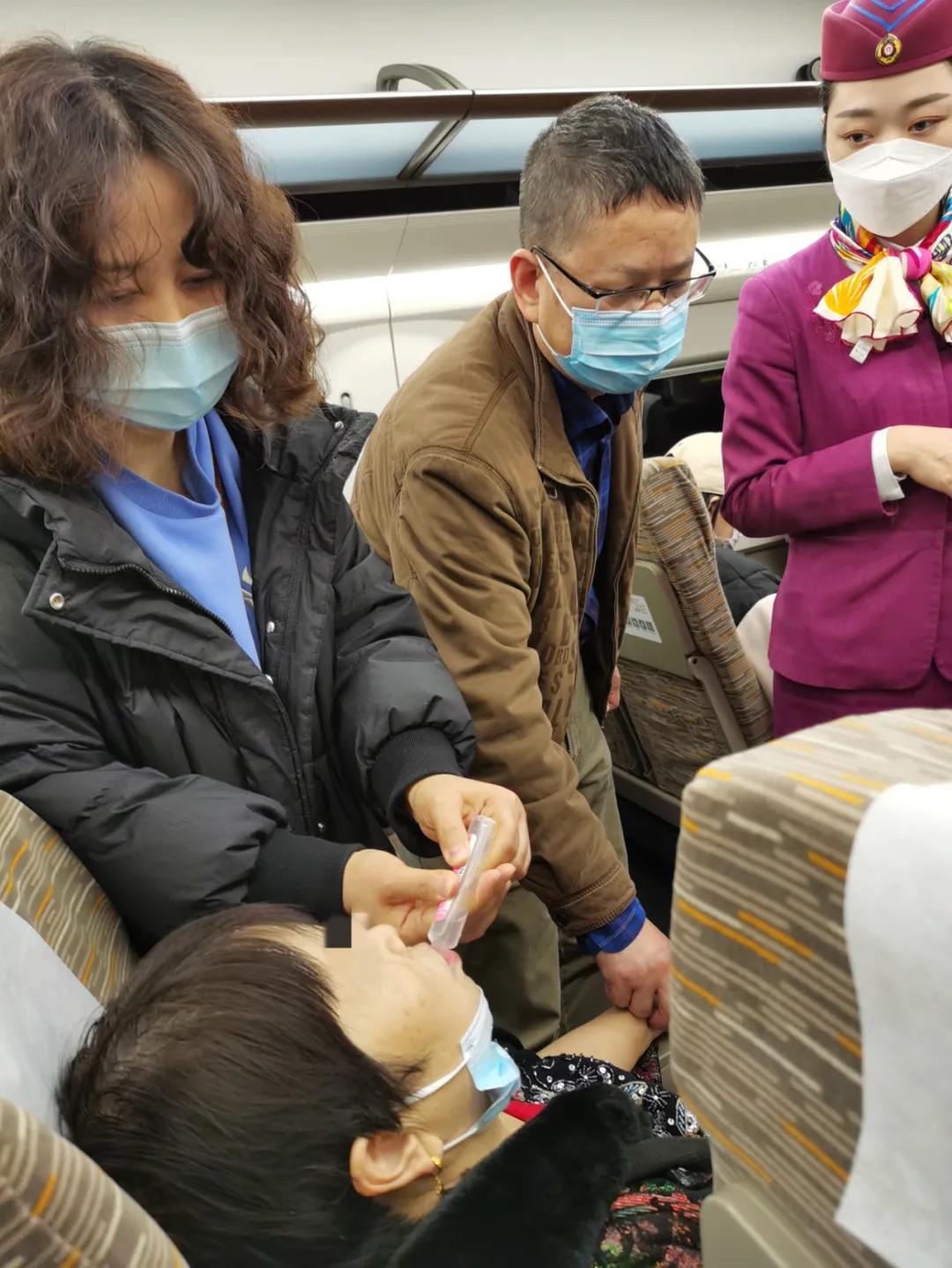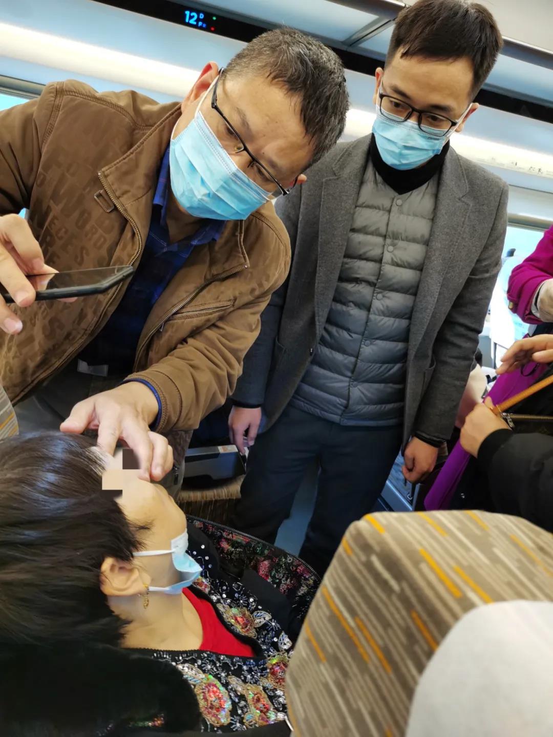 经与陪伴老人的女儿询问沟通,冯主任了解到这位家住重庆的老人,是陪同刚做完手术的女儿返回成都,上车不久就发病跌倒,双眼紧闭一声不吭,女儿喊不答应,急切之下向乘务员求救。