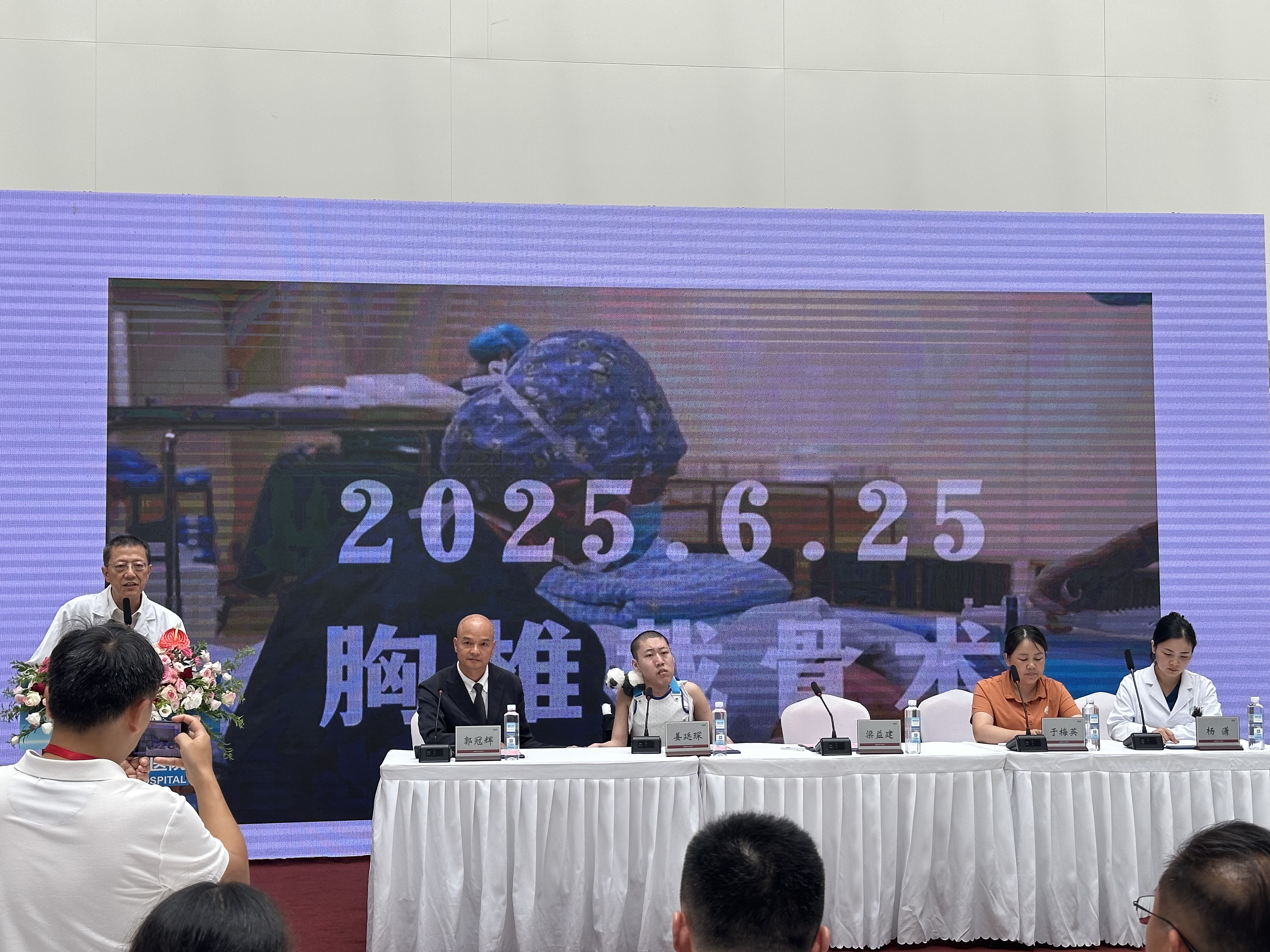 从2024年12月4日的反向截骨矫形手术,到今年6月25日的胸椎段矫形手术,梁益建带领团队先后为姜延琛开展4次手术,矫正约170度,这也是世界首例反向折叠人矫正手术。
