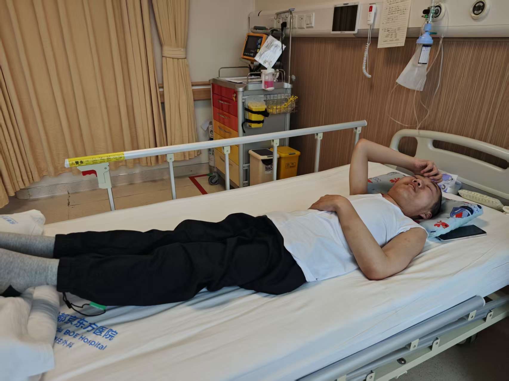 梁益建回忆,2024年姜延琛来到成都京东方医院时,病情已岌岌可危:极重度脊柱反向折叠导致胸腔、腹腔极度狭窄,脏器被挤压在狭小空间;二型呼吸衰竭让他血液中氧气含量远低于正常标准,二氧化碳严重潴留,随时可能因血液酸化引发脑水肿、昏迷。