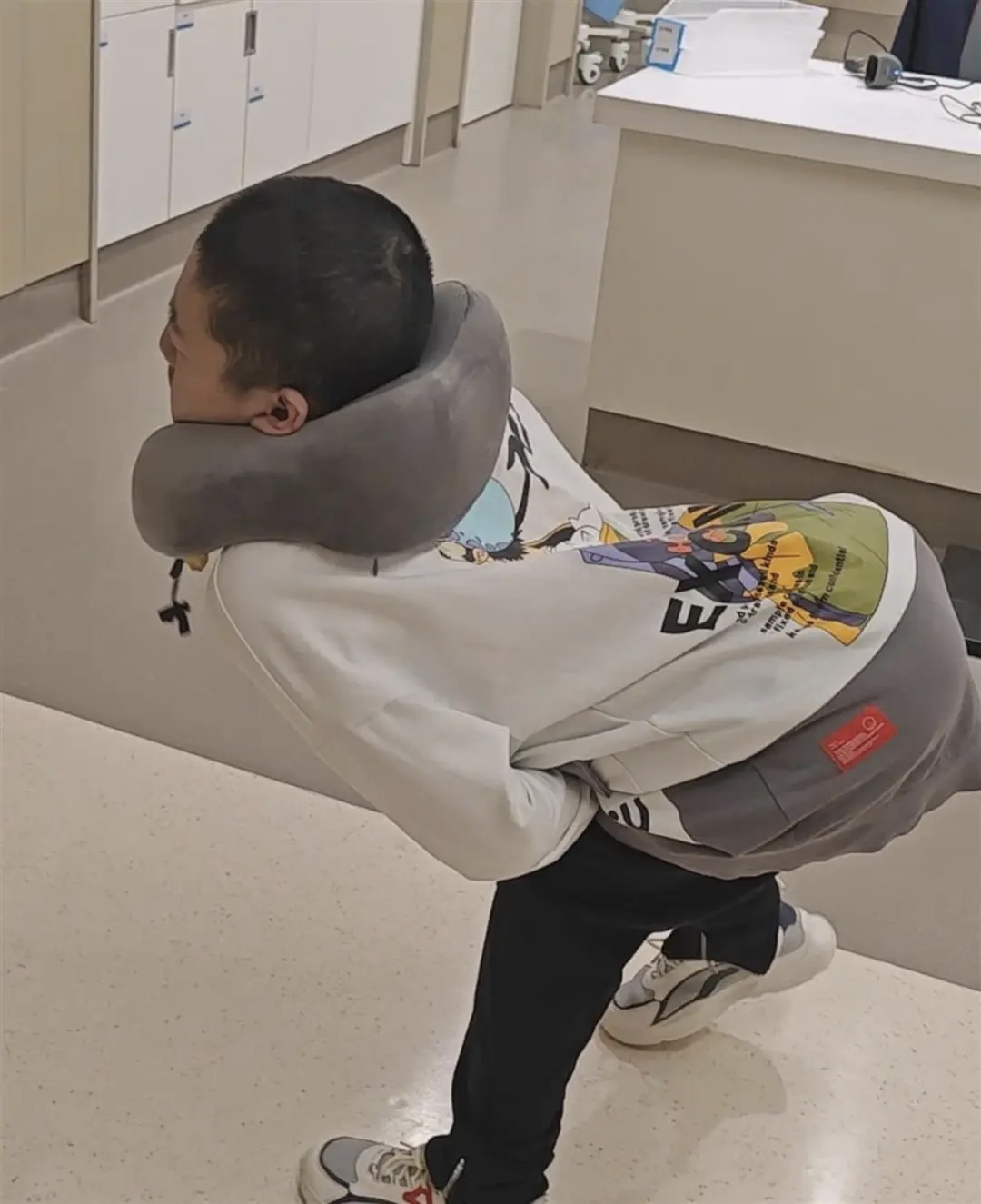 起初,他后仰的头还能被人轻轻扶正,后来脖子逐渐发硬;初三时,脖子折叠贴到后背;再往后,身体逐渐成了 “Z形” 畸形,头和脊柱之间仅有一只手厚度的间隙。