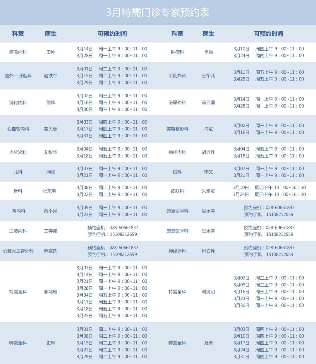 为进一步提升就医体验,满足患者的差异化就诊需求,3月1日起,成都京东方医院将正式开通特需门诊。